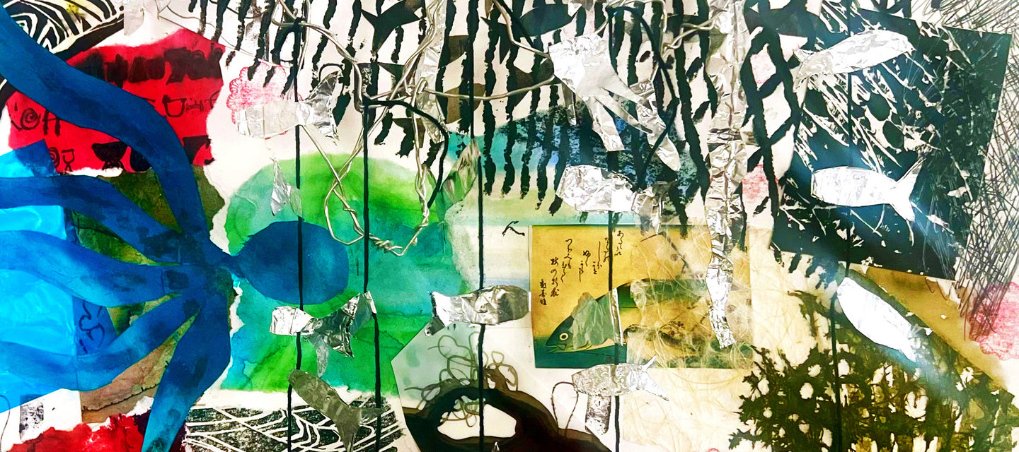 During the month of February, artists in the Open Sketchbook mentorship program created new work under the subject Everything's Related and our monthly theme Auras and Enigmas. Weekly projects were based on glowing light patterns, unusual objects and odd occurrences. Works by Morris Graves, Gertrude Abercrombie and Yayoi Kusama were studied for their mystical, surreal and otherworldly qualities. Artists worked with wet watercolor washes, collage, layering and mixed media.